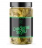 Spalmare il paté di carciofi sulla base della pizza e cospargerla con la mozzarella tagliata a fettine.